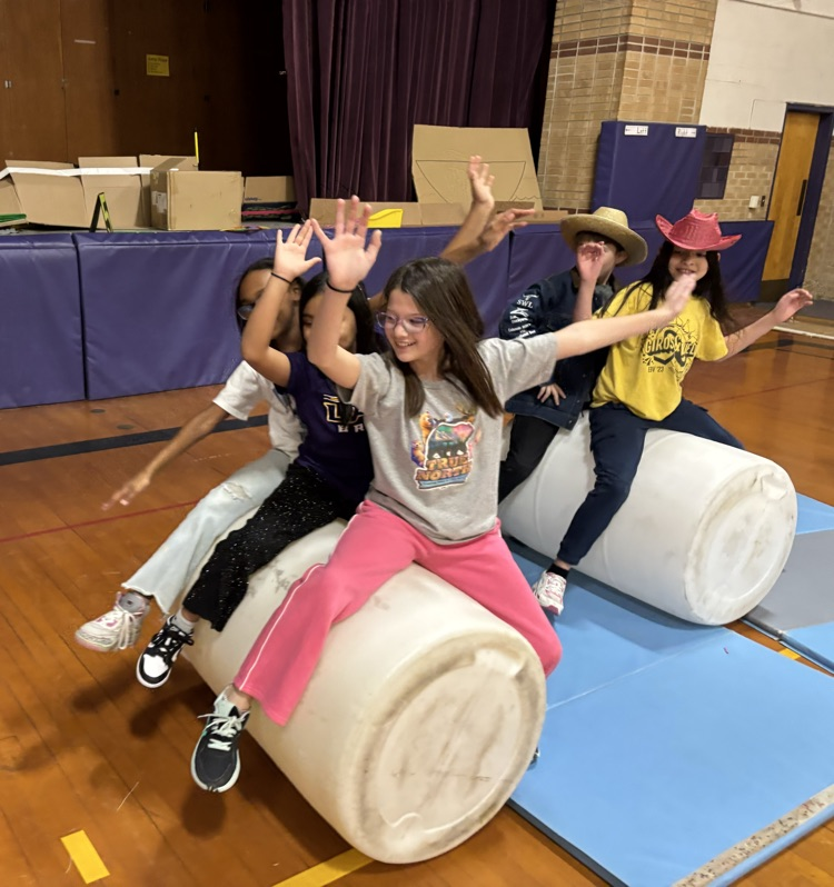 LGS PE classes worked on balance and coordination by playing stick pony tag and riding bucking broncs.