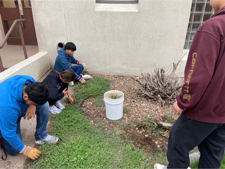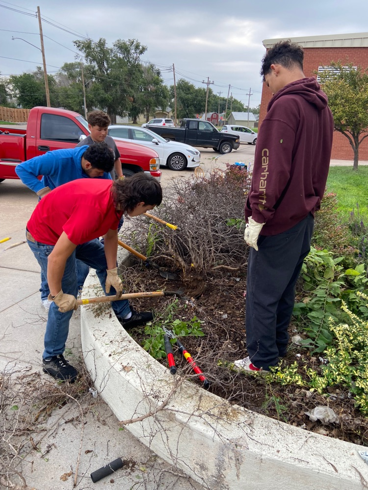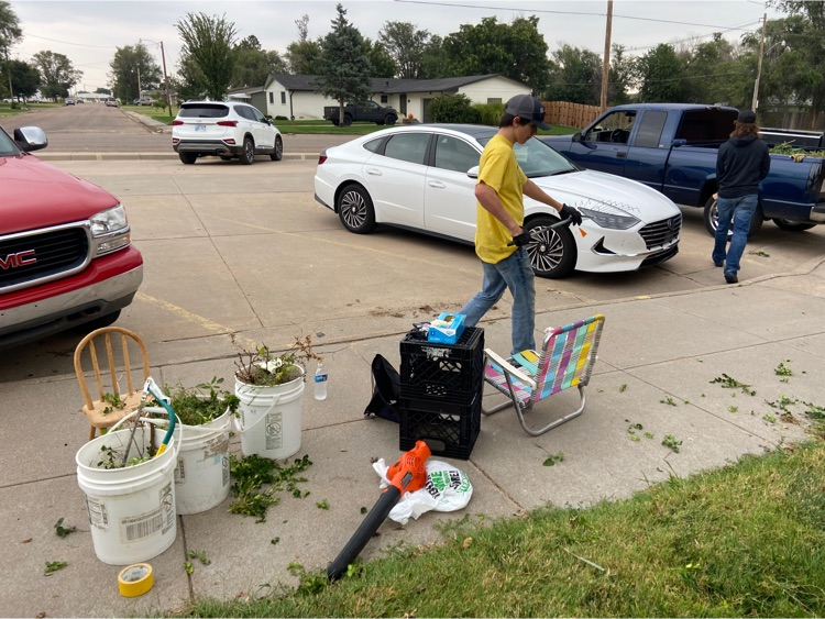 Mr. Pollart's advisory class doing the community service. Highway cleanup and then yard work at the Catholic Church