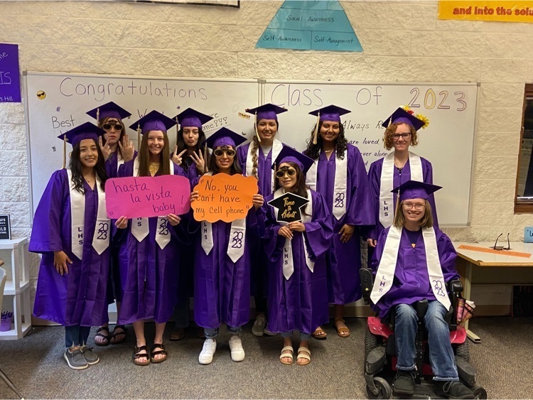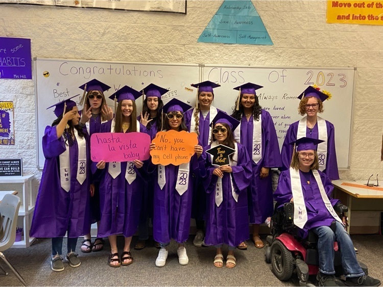 Last day celebration for the LHS Class of 2023! Some came early, some came late, some stayed and listened to the wonderful rain! Congratulations seniors! You will be missed. 💜💛