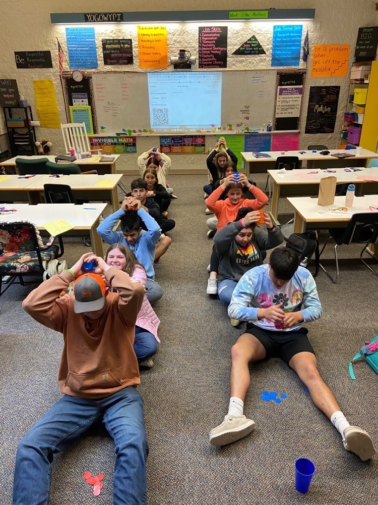 A little team building in Mrs Hill's consumer math class coming back from spring break
