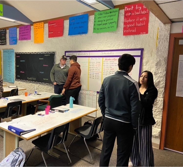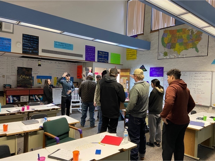 Personal finance class participating in a Kagan cooperative learning strategy describing their personal take-away from guest speaker Kayden Christiansen’s life advice yesterday.