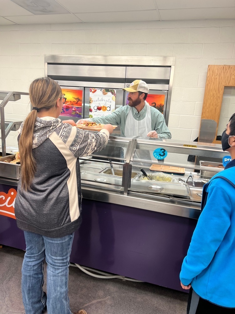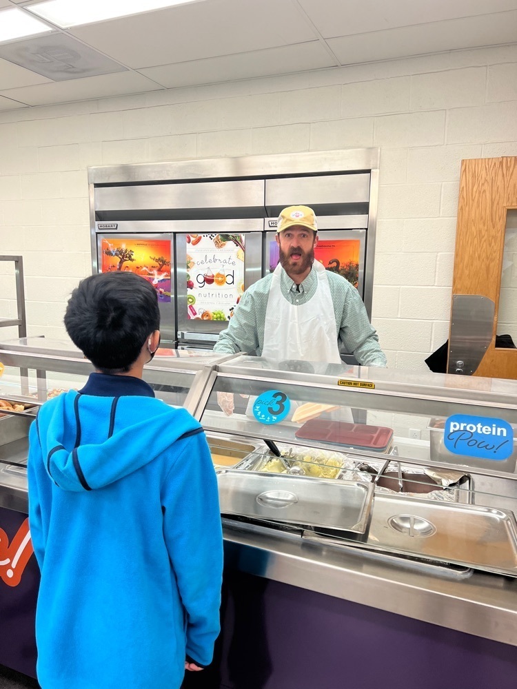 One of the lunch ladies at the Middle School today was sick so Mr. Calkins helped out in the lunchroom. He did a amazing job.