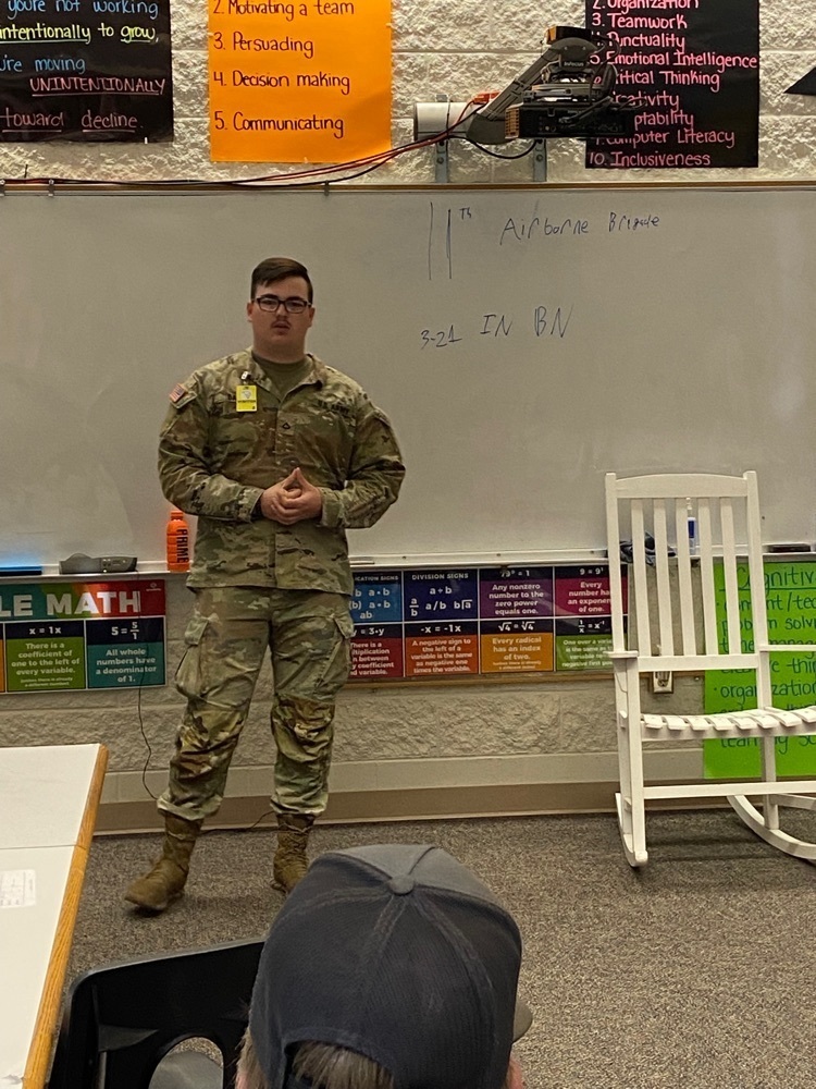 Thank you PFC Kaden Day for being a guest speaker in Mrs. Hill’s class about life in the Army and finances after high school. 🇺🇸🇺🇸