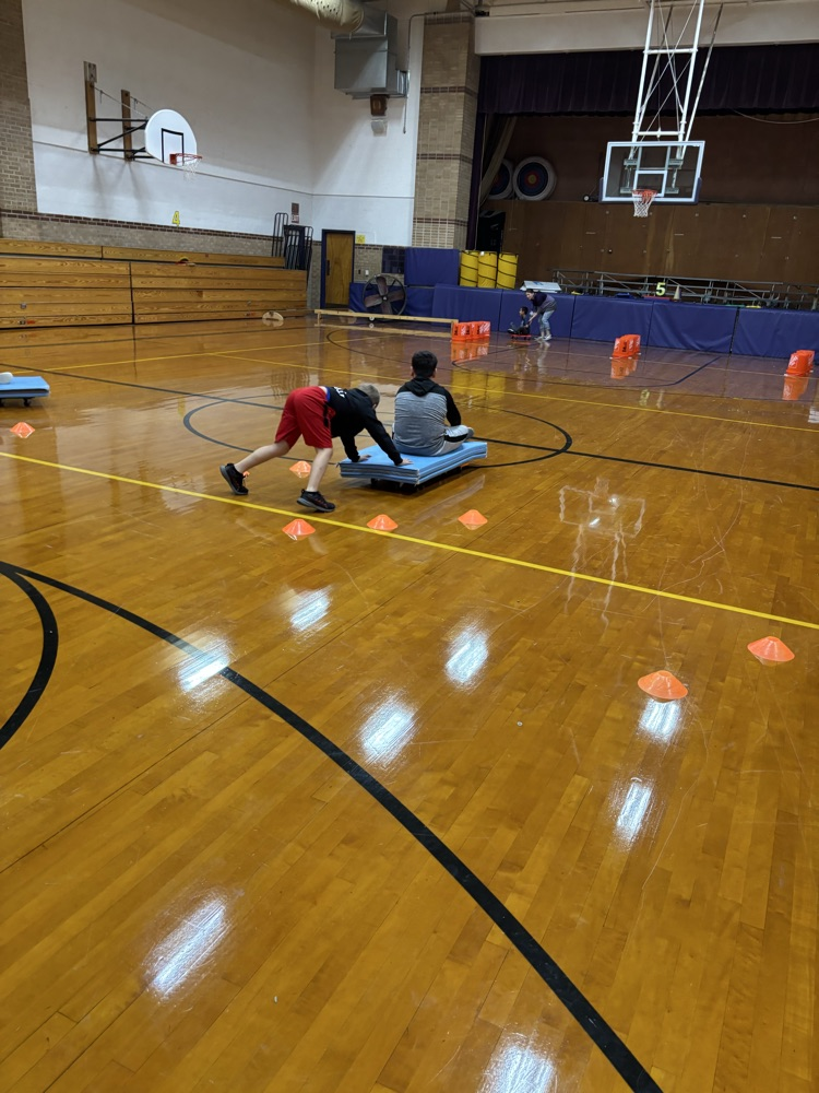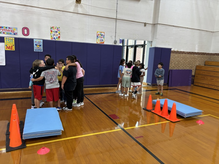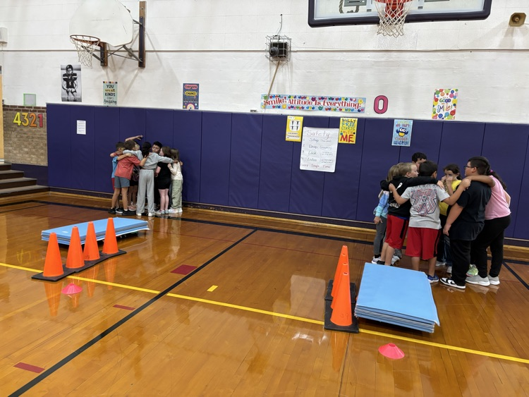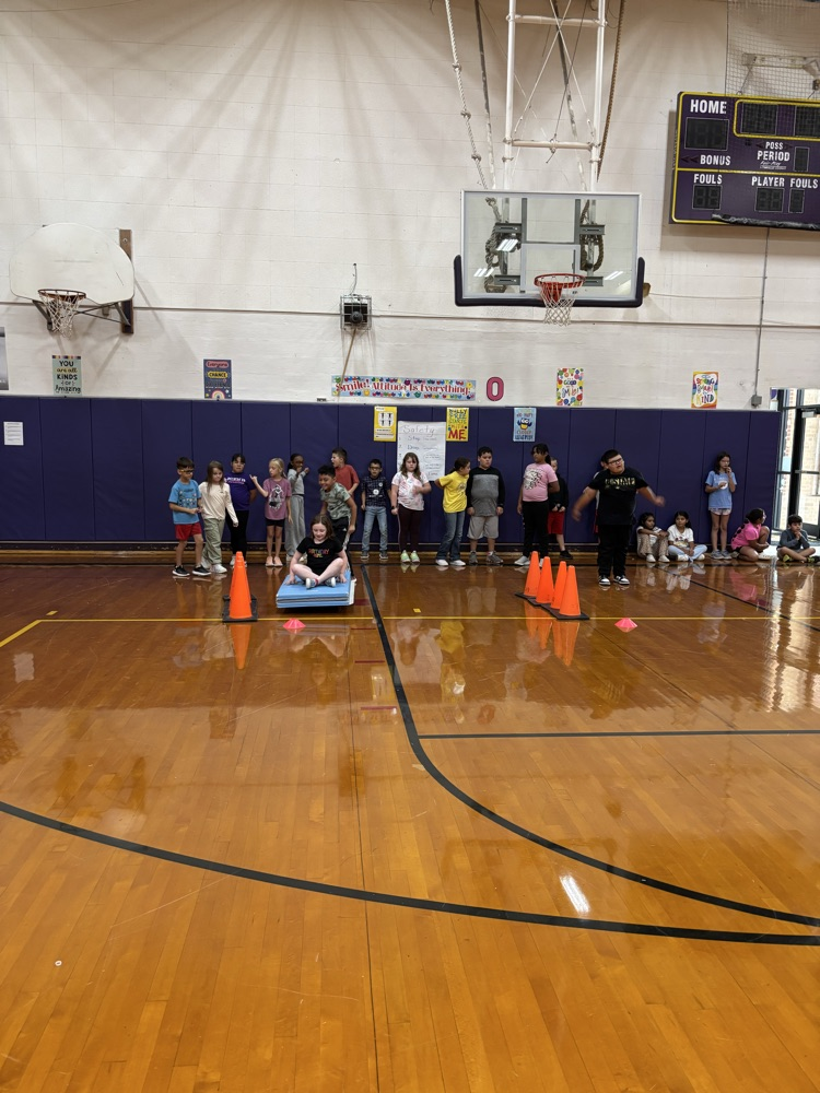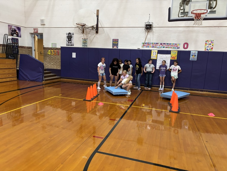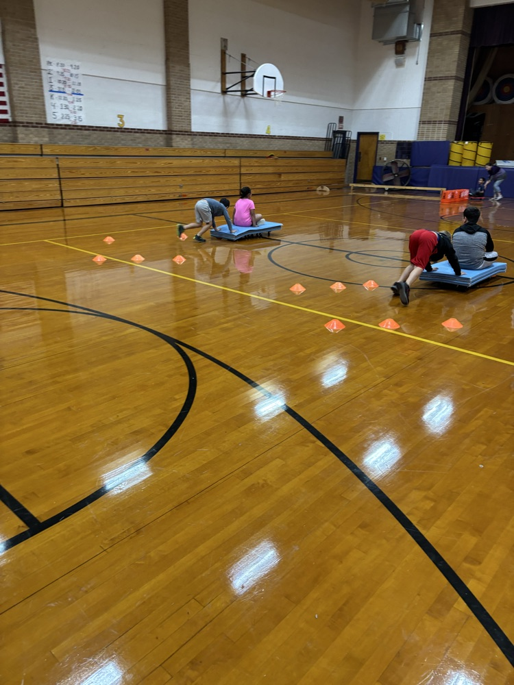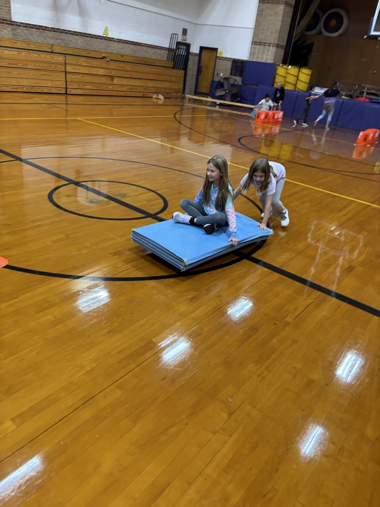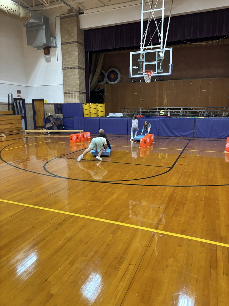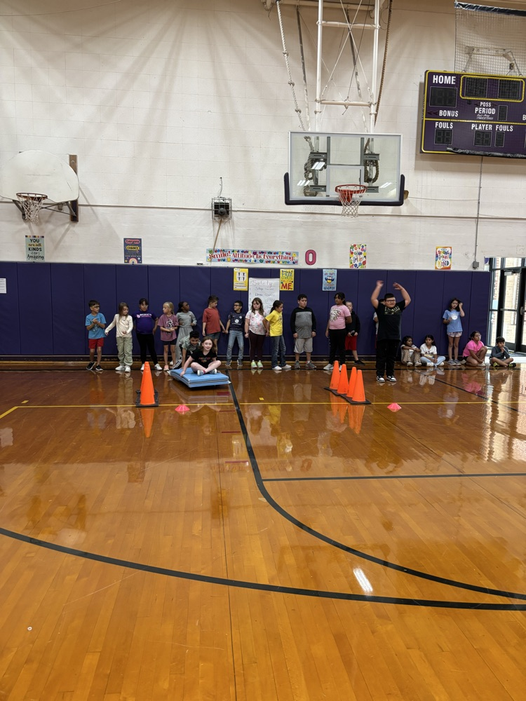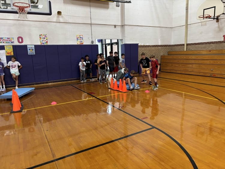 Pirate Ships in PE Wednesday. They had to leave the port, go through a canal, go around a buoy, dock and disembark at treasure Island, then sail home through the canal again before disembarking.