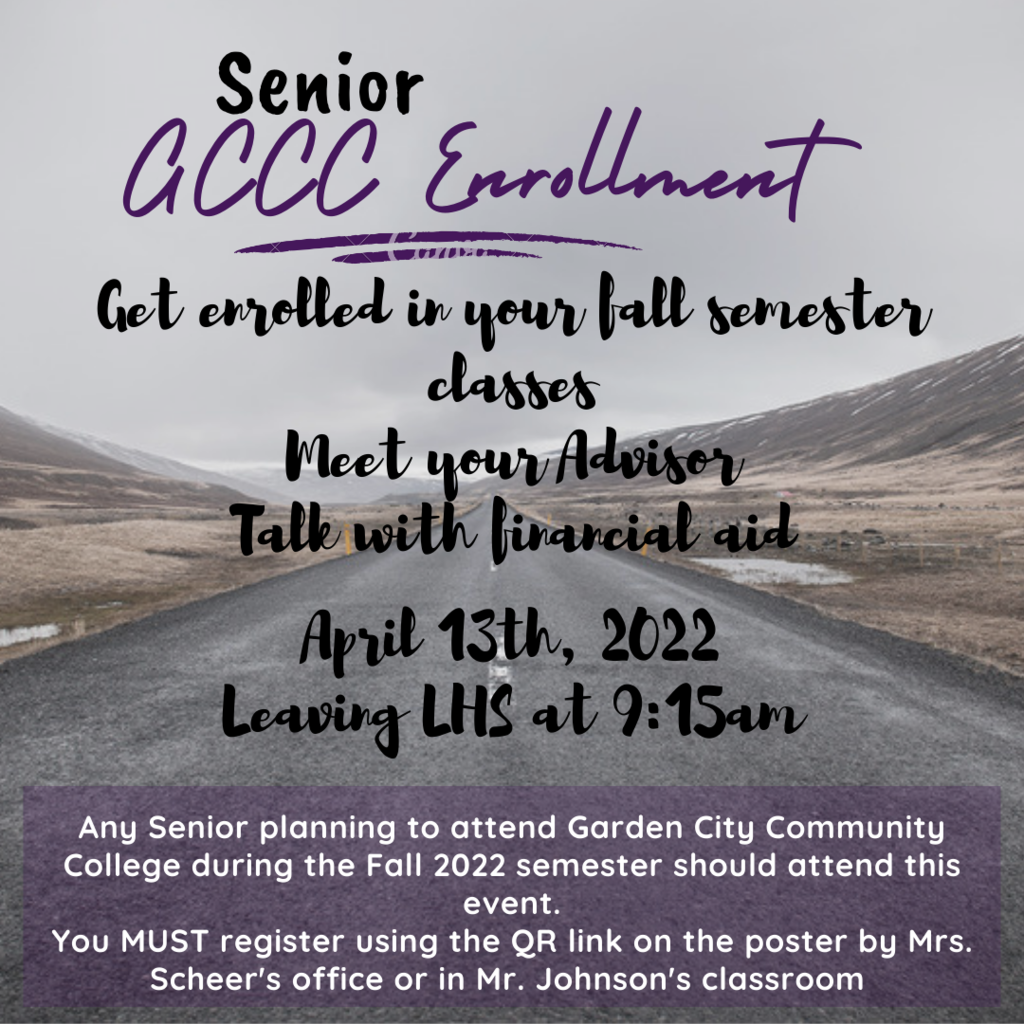 If you are a Senior planning to attend GCCC next school year, please register to attend this GCCC Enrollment event! Please see Mrs. Scheer if you have any questions.