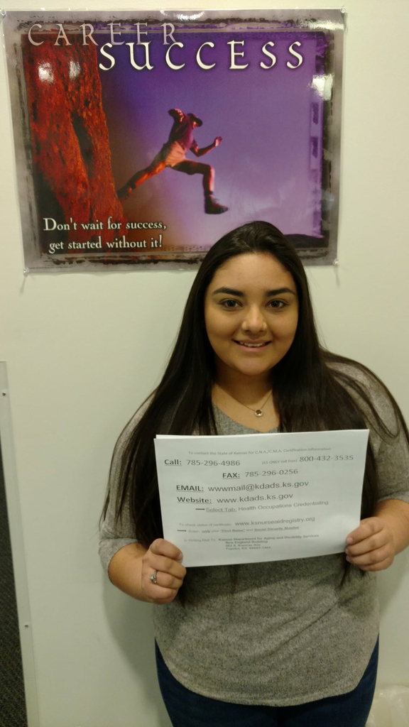 Congratulations to Lakin Broncs’ newest CNA certification recipient. Great job Julissa!